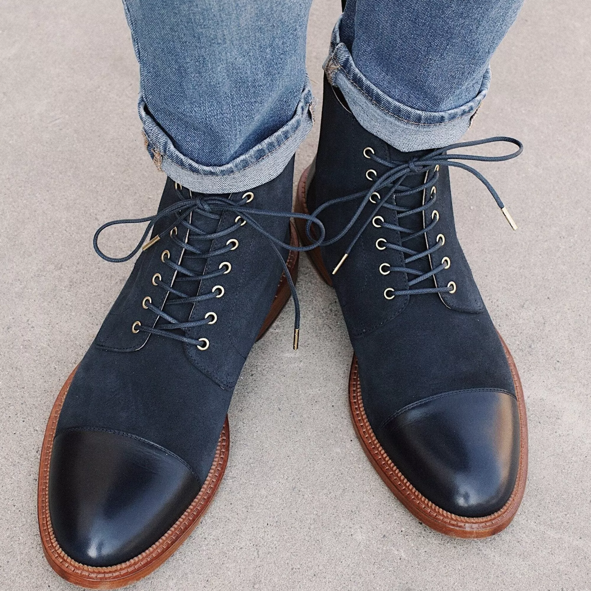 Meet The Troy Boot In Navy…Your New Party Boot. The Perfect Balance Of Sleek And Rugged, This Boot Is A New Variation On Our Classic Jack Boot. With An Incredibly Substantial Suede And A Full Leather Lining, The Troy Boot Is As Durable As It Is Comfortable. It Features A Reinforced, Stacked Leather Sole With Rubber Inserts. As Always, We Spared No Expense And Opted For The Highest Quality Materials Available. The Troy Boot In Navy Features Gold Details And Highlights In The Leather Lining, The Eyelets, And The Tips Of The Laces. Wear This Boot When You Want To Get Attention.